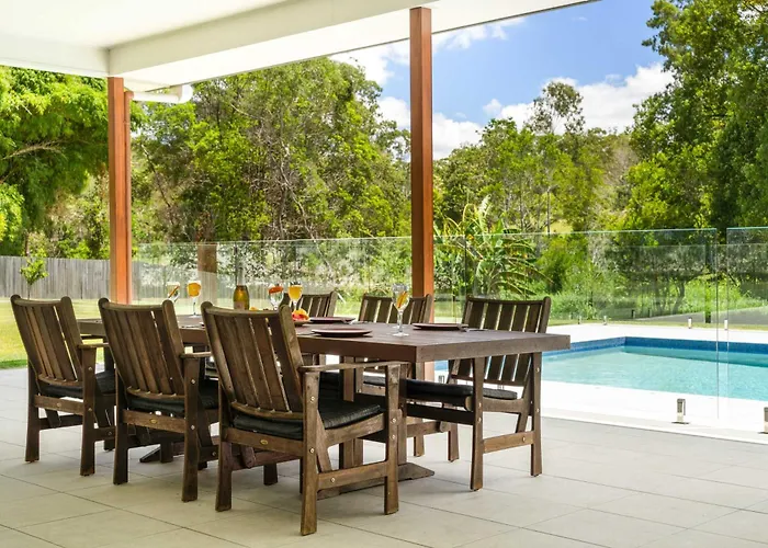 The 2-bedroom Hinterland Haven With Heated Pool & Lush Surrounds Villa Mooloolah is located 4.6 km from the Chenrezig Buddhist Institute and provides a private swimming pool, ensuring a relaxing stay.
